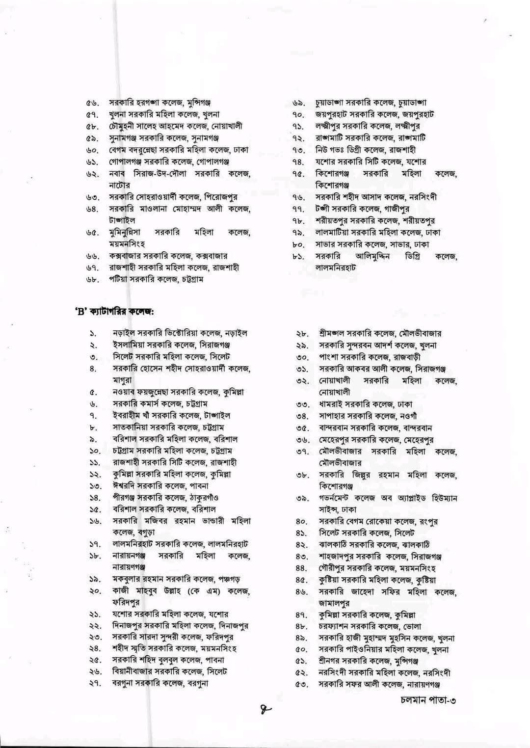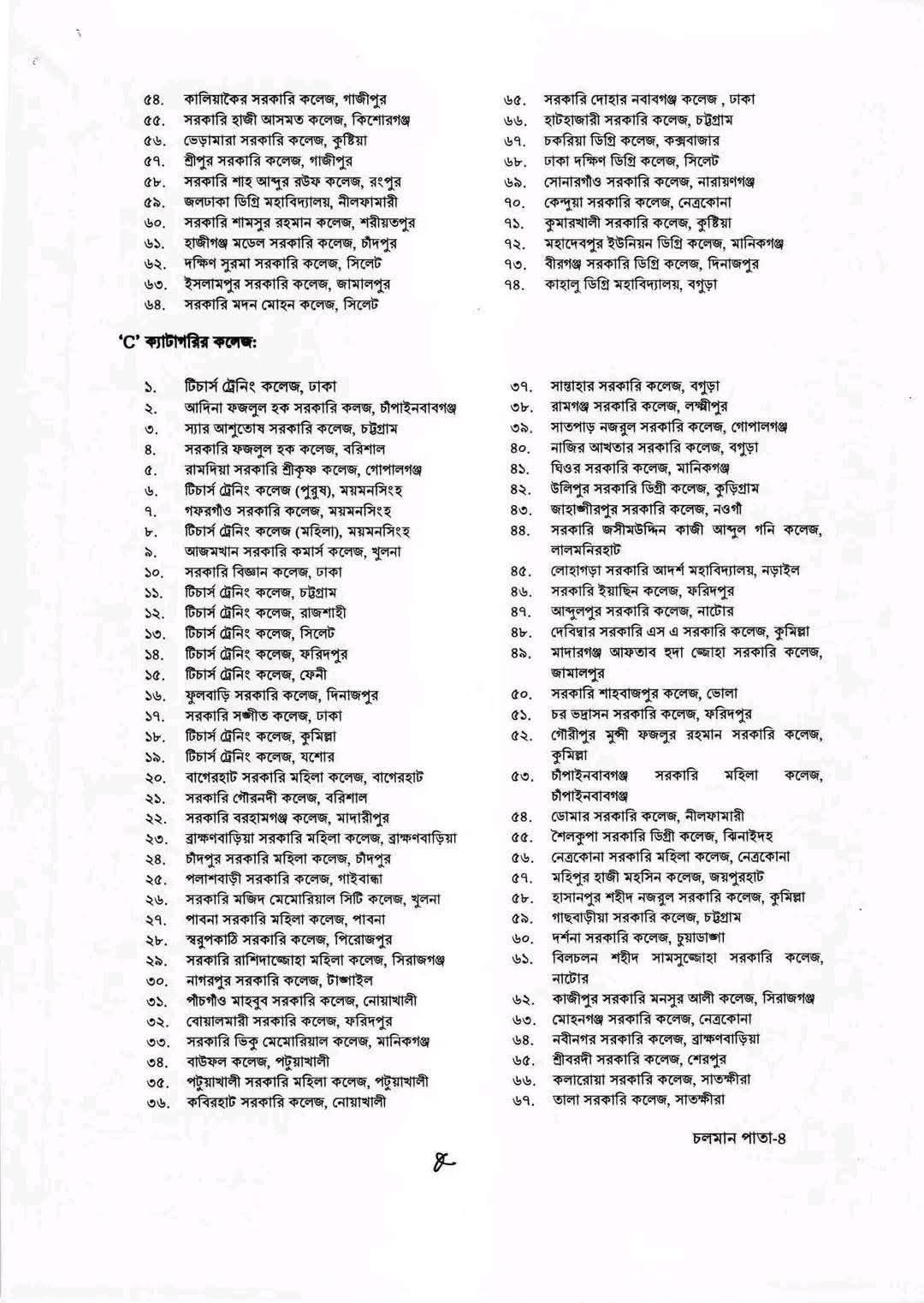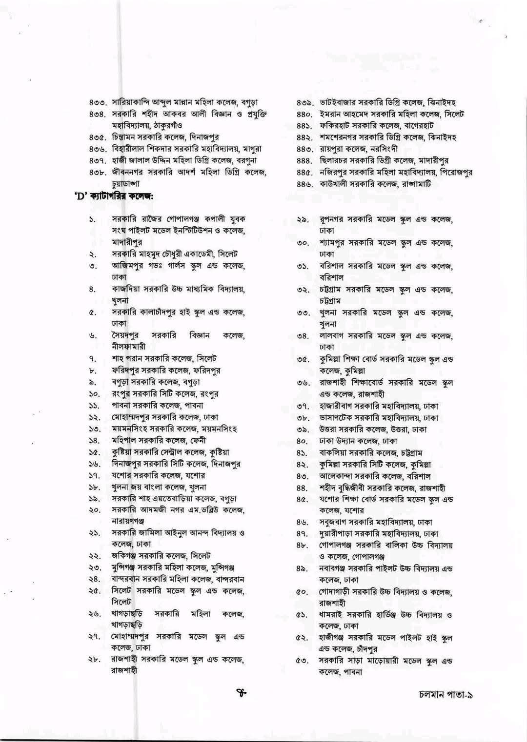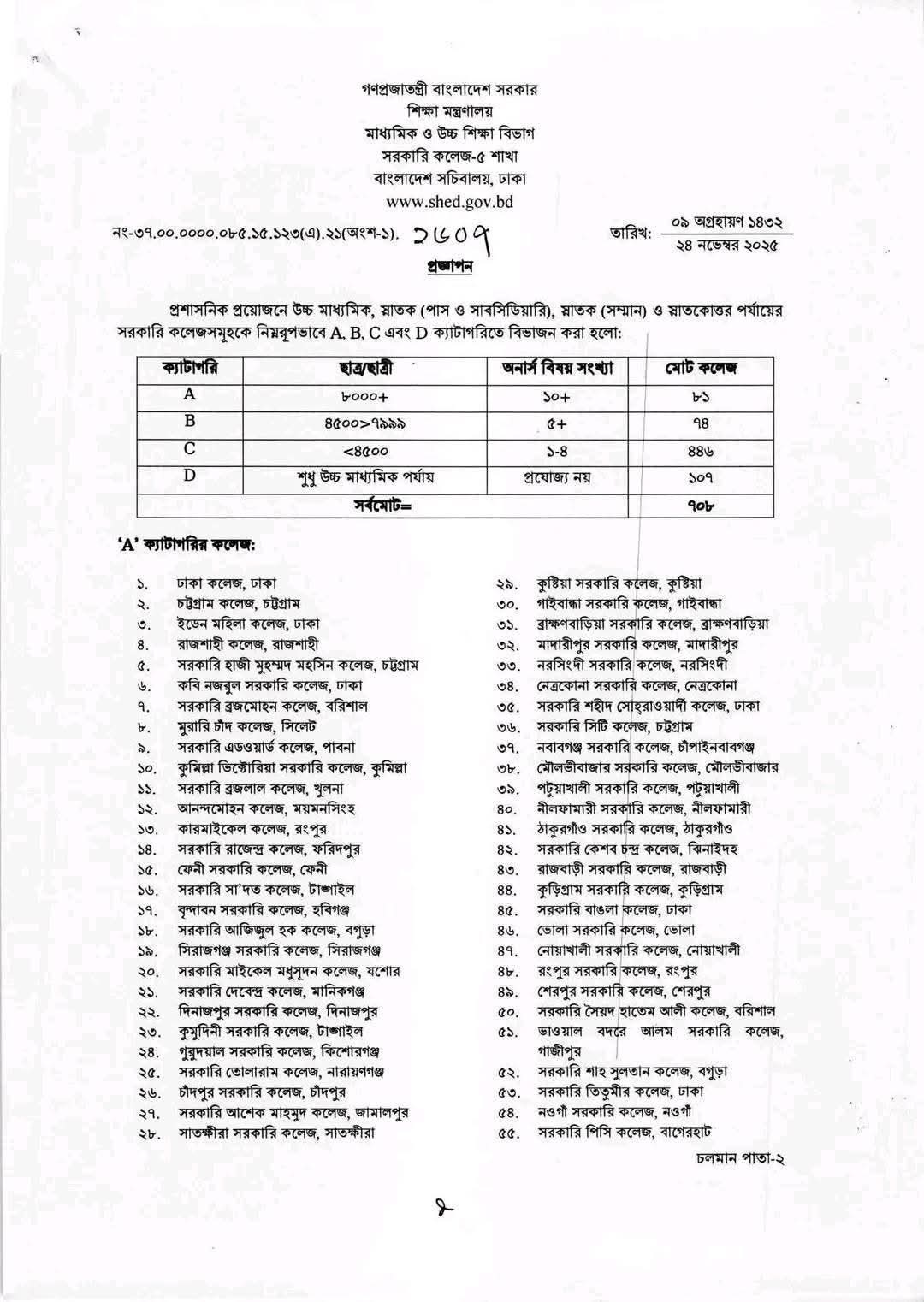 The interim government has officially classified all 708 government colleges in Bangladesh into four categories (A, B, C, D) through a gazette notification issued today, Monday (24 November), by the Secondary and Higher Education Division (Government College-5 Branch) of the Ministry of Education.