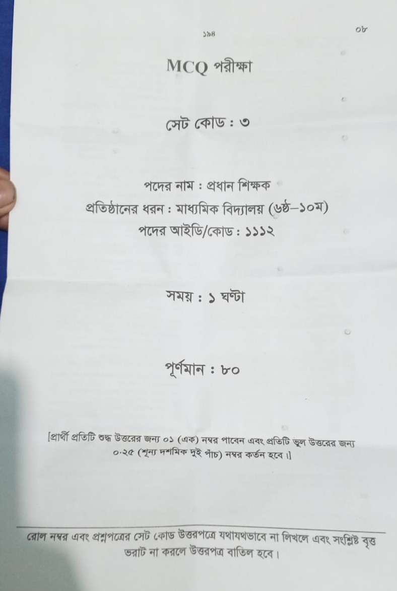 The examination is being conducted in MCQ format at 9 centres in Dhaka. A special control room has been set up at the NTRCA office to ensure the exam runs smoothly.