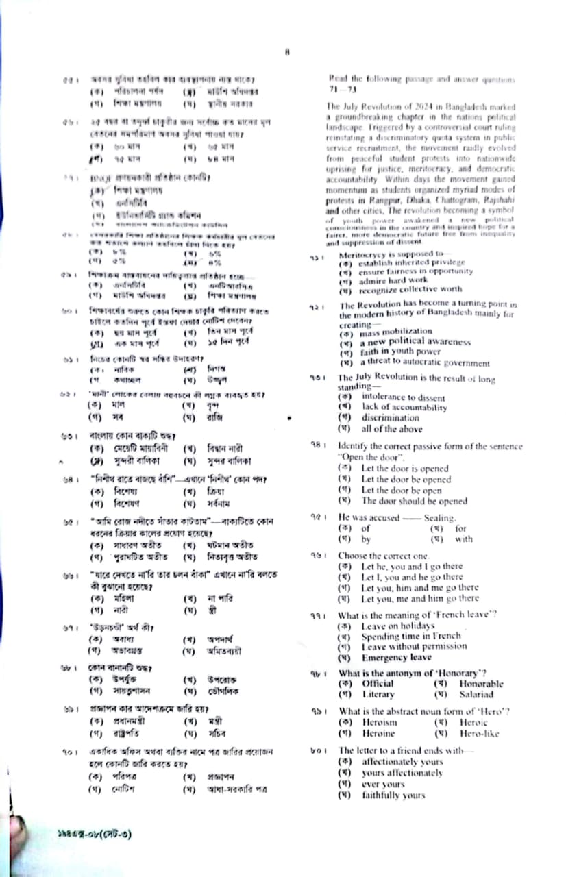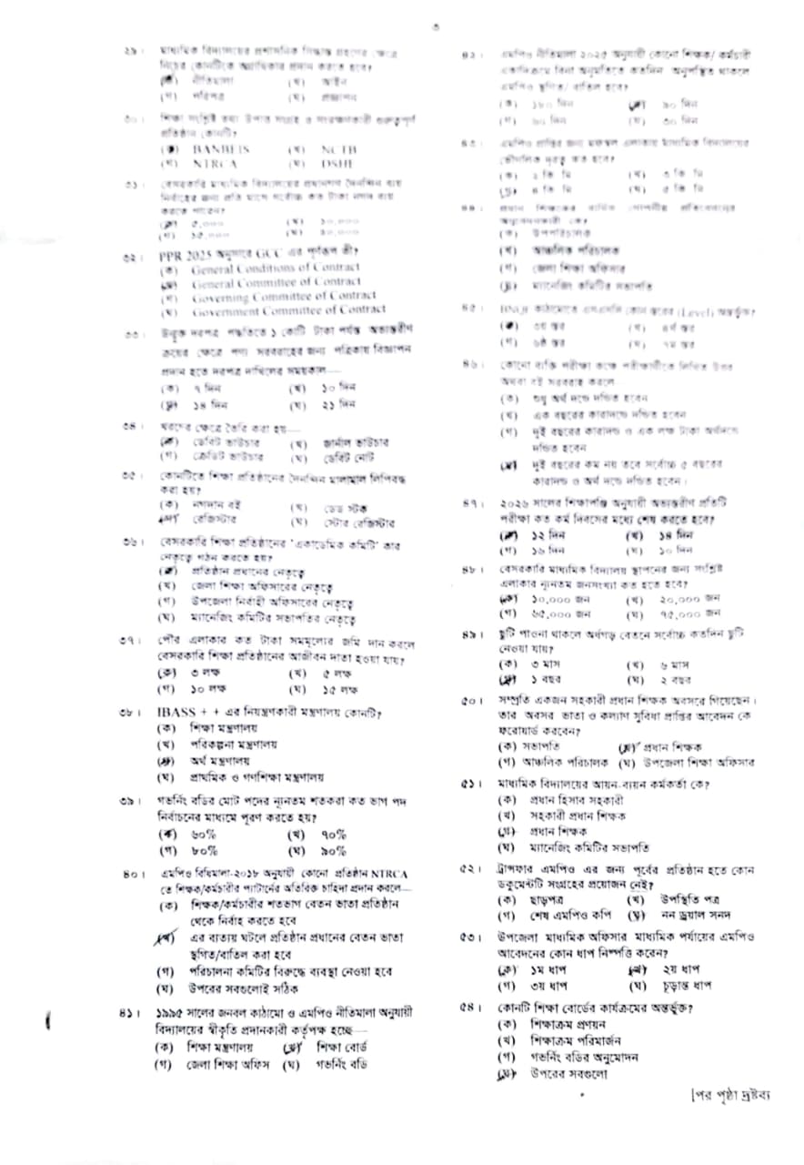 NTRCA Institution Head Recruitment Exam 1st Shift Question — Check Here