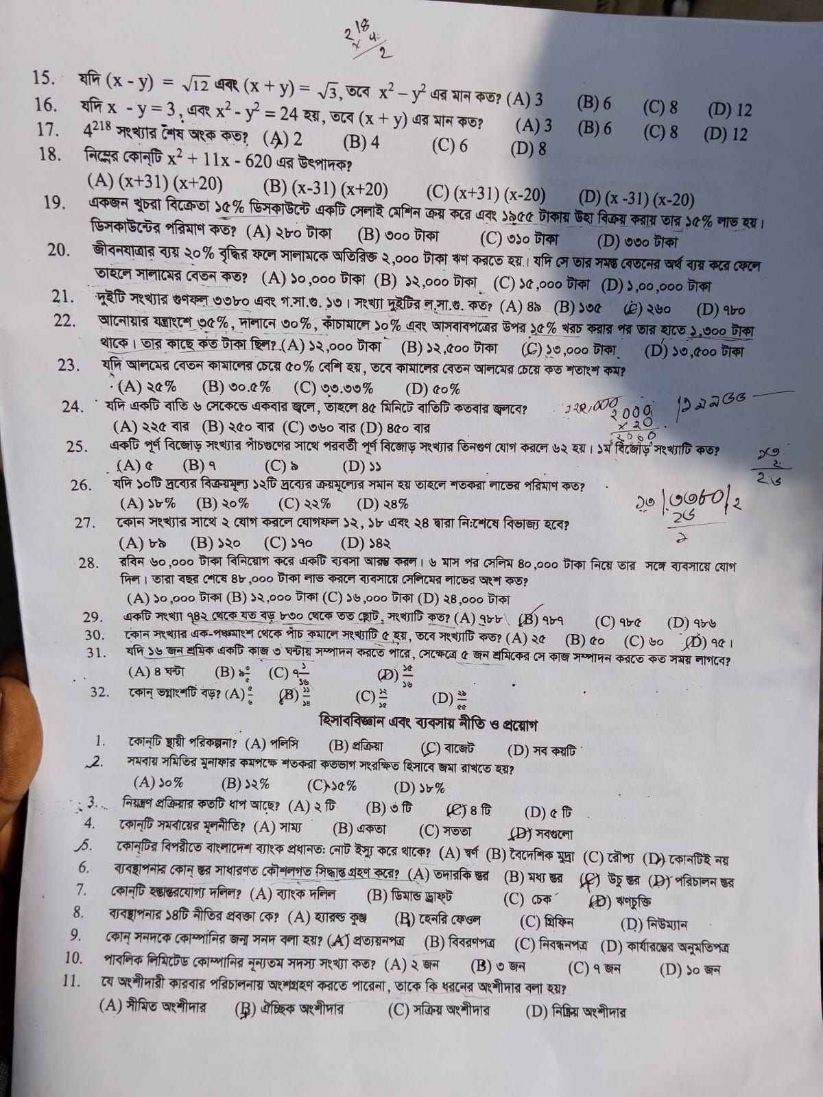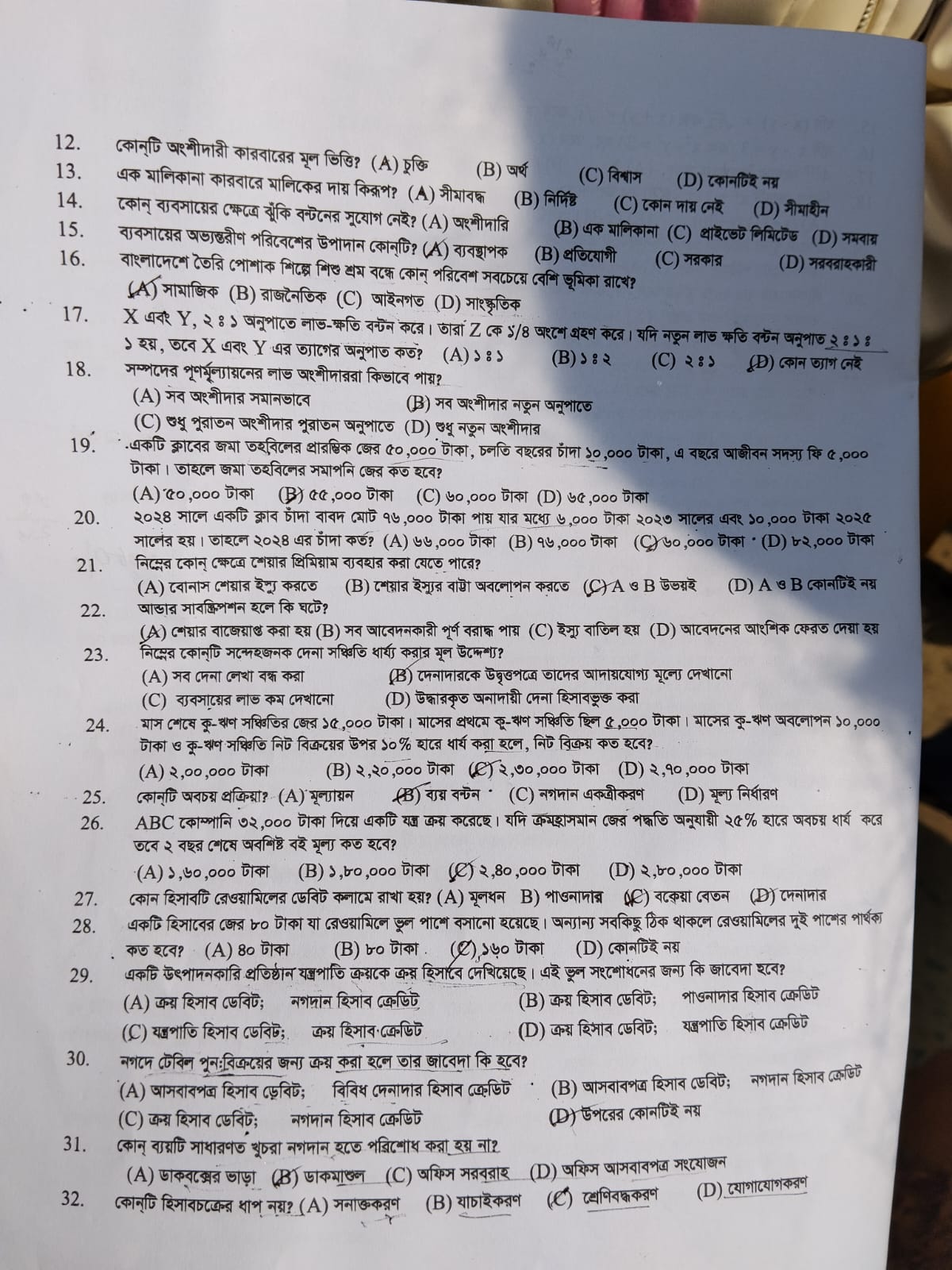 Questions were set from English, Mathematical Intelligence and Accounting Science, and Business Principles and Application.